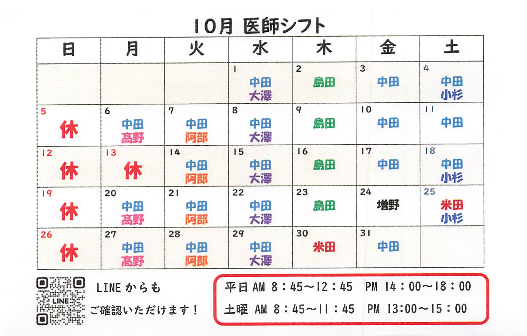 医師の希望がある方はご確認の上、来院くださいますようお願いいたします。
